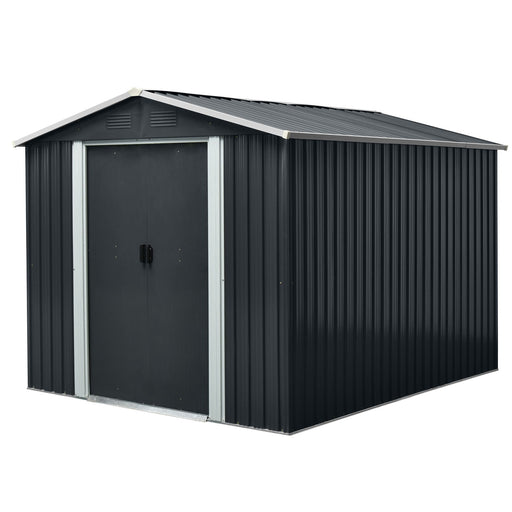 Outdoor Metal Storage Shed With Sliding Door And Foundation For Backyard, Patio, Lawn