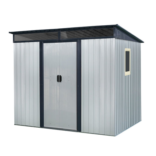 Outdoor Metal Storage Shed With Window And Transparent Plate For Garden, Lawn