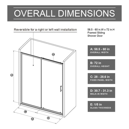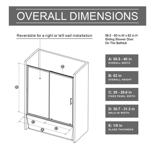 Daily NestAdjustable and Flexible Design: Versatile sliding door with adjustable width from 58.5 to 60 inches, fitting various bathroom sizes. Certified Saf...