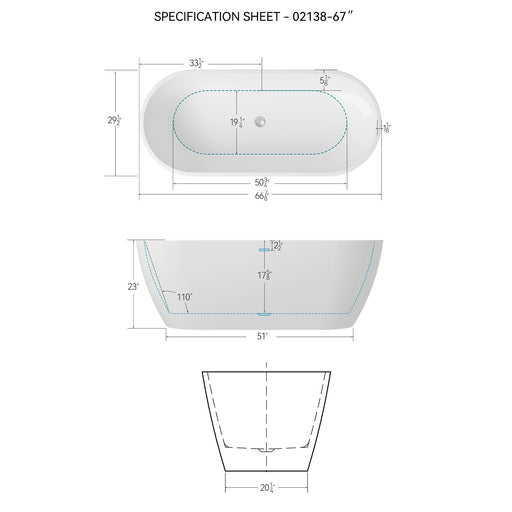 Daily NestSpacious Dimensions: This bathtub offers a generous size of 67x29.5 inches for a comfortable bathing experience. Matte White Finish: Boasts a st...