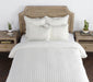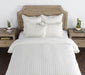 Our Monaco Collection is impressively soft thanks to its Belgian Flax linen fabric and light stonewash finish. The woven pinstripe design introduces an iconic pattern and a dash of color that will compliment the mood of any bedroom. A hidden button closure provides a clean finished look while the corner ties allow for a secure insert without any shifting. Bedding should be washed in cold water with mild detergents that do not contain bleach or other whiteners using a large capacity washing machine. Tumble dry on a low heat seating and remove immediately to avoid wrinkles. Villa Bedding is prewashed before packaging to avoid products from shrinking and stiffening. Our Cotton and Linen products become softer with every wash.