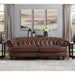 The Newport Collection emanates sophistication through its distinguished features, including the serpentine front rail, hand-applied nail-head trim, and solid wood turned finial legs, providing impeccable finishing touches. The hand-finished leather further enhances its allure, showcasing a subtle play of light and dark areas. This characteristic adds to the polished and inviting appeal, defining the Newport collection with a unique character. With meticulous attention to detail and refined aesthetics, this collection stands as a distinctive addition, promising to elevate the ambiance of any space it graces.