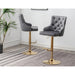 Adjustable Swivel Bar Stool, Upholstered Kitchen Chair, Nailhead Trim And Tufted Back (Set of 2) - Black / Gold