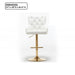 Adjustable Swivel Bar Stool, Upholstered Kitchen Chair, Nailhead Trim And Tufted Back (Set of 2) - Gold / White