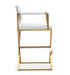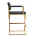 Furnish your kitchen or bar area in contemporary style with the Director stool. The gold solid stainless steel frame provides a sturdy base, while the plush extra deep seat and footrest ensure maximum comfort. The combination of angles and gentle curves gives this stool an eye-catching appearance, while the neutral color allows it to match well with any decor.