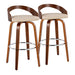 Grotto - Mid-Century Modern Fixed Height Barstool With Swivel With Round Footrest (Set of 2) - Walnut / Cream