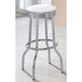 • Padded round seat upholstered in soft, easy-to-clean white leatherette combines comfort with durable, long-lasting construction