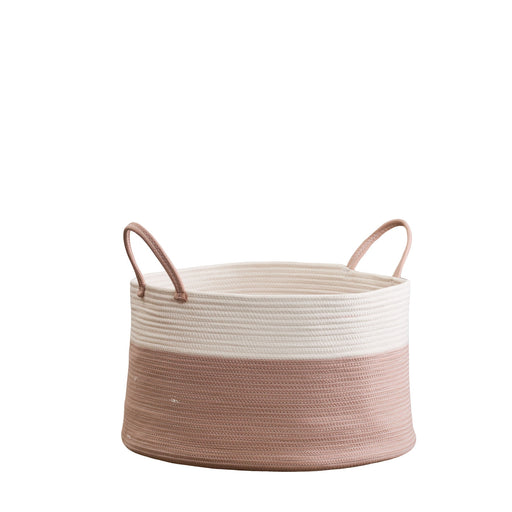 Cotton Round Laundry And Storage Basket With Handles - Pink / White