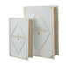 • Stylish Storage: Adorable pair of book boxes with faux leather covers in white and gold, printed with "French Traditions".