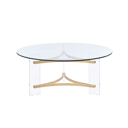 AcmeStylish Design: This coffee table features a modern, round tempered glass top with 10mm thickness, supported by a unique triangular chrome me...