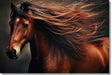 Experience the dynamic beauty of the "Chestnut Horse in the Wind," a striking piece rendered on tempered glass that captures the powerful grace and flowing mane of a chestnut horse caught in a breeze. This contemporary graphic art is hand-embellished beneath durable tempered glass, providing a sleek, glossy finish that enhances depth and vibrancy. Ready to hang with angled sawtooth hangers, it offers effortless installation and a modern, frameless look. Perfect for living rooms, offices, or dens, this artwork not only elevates your space but also supports a social cause, donating a meal to a hungry American child with each purchase.
