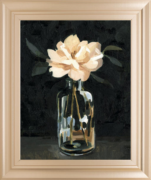 Classy LivingThis evocative piece showcases a single creamy rose resting gracefully in a clear glass vase, set against a rich, dark background that enhances its...