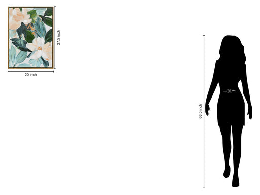 "Floral Serenity I" Hand-Embellished Canvas In Frame - Natural Wood / Peach / Green