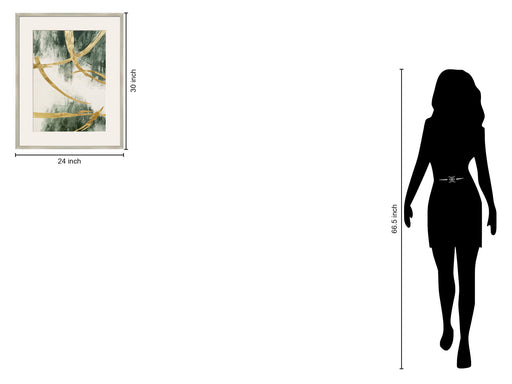 "Golden Strokes II" Hand-Embellished Canvas Framed Under Acrylic - Silver / Green / Gold