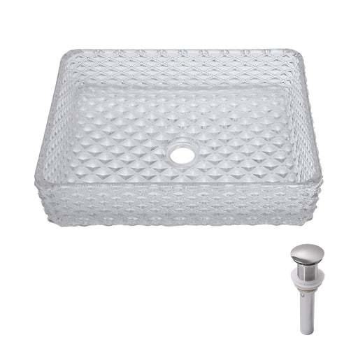 Clear Vessel Sink Rectangle Above Counter Bathroom Basin With Pop Up Drain, No Faucet - Clear