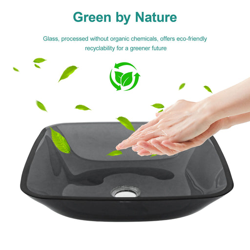 Gradient Tempered Glass Vessel Sink With Pop-Up Drain