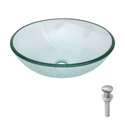 Crackle Vessel Sink, Round Bowl With Pop Up Drain - Clear