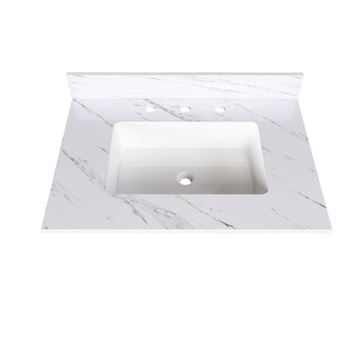 Rectangular Single Vanity Top With 3 Faucet Hole Sink - White