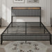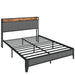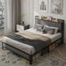 Queen Size Bed Frame with Charging Station, Upholstered Headboard, Metal Platform, Grey