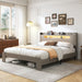 King Size Platform Bed Frame With Storage LED Light Headboard And Usb, Noise Free - Dark Gray