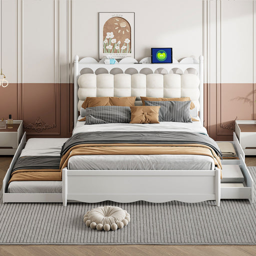 Upholstered Platform Bed With Reading Lights, Drawers, Trundle And Shelves