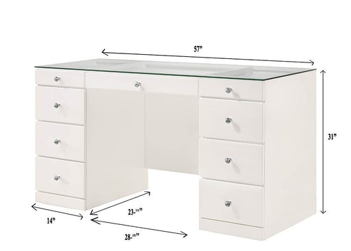 Crown MarkAvery - Vanity Desk With Glass Top - WhiteAvery - Vanity Base - White Dimensions 57"L x 23.25"D x 31"H Weight 152.12 lbs Avery - Vani...