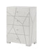 Transform your bedroom into a contemporary sanctuary with this sophisticated and stylish furniture ensemble. Defined by its bold geometric accents and pristine high-gloss white finish, this collection exudes modern elegance while maintaining a clean, minimalist aesthetic. The centerpiece bed is enhanced with a dramatic LED-lit headboard, adding ambiance and a touch of luxury to your space. Coordinated storage pieces, including a dresser, chest, and nightstands, provide ample organization while showcasing sleek hardware and clean lines. Perfect for creating a cohesive and serene atmosphere, this bedroom group offers the perfect blend of form and function, making your retreat as stunning as it is practical.