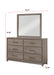 Discover the perfect blend of modern simplicity and understated elegance with this contemporary bedroom collection. Each piece, fashioned with a sleek, minimalist design and a soothing grey oak finish, offers a tranquil backdrop for your personal retreat. The collection is thoughtfully composed of a clean-lined bed frame, a streamlined dresser with ample storage, complemented by a large, practical mirror, and a nightstand that provides easy access to your nighttime essentials.