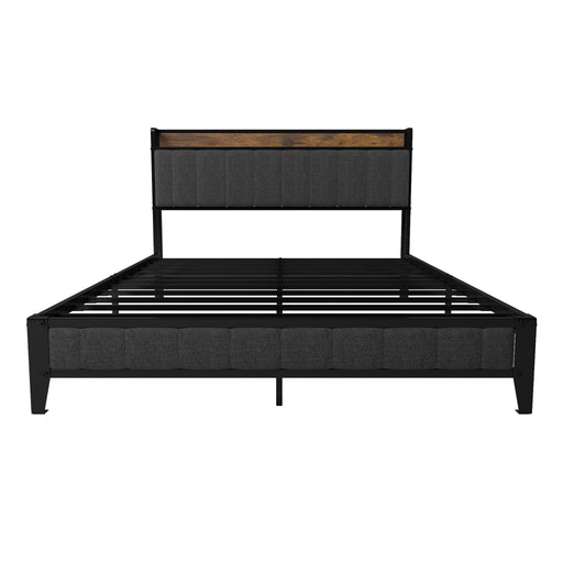 Bed With Charging Station, American Design Upholstered Headboard, Metal Platform