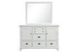 The Jamestown 2-Piece Dresser and Mirror Set in White combines elegance and functionality, making it an ideal addition to any bedroom. This set includes a dresser and a mirror, both crafted for endurance from solid Acacia, premium manufactured woods, and authentic Oak veneers, ensuring long-lasting durability while maintaining the natural beauty of real wood. The Jamestown collection features modern coastal charm, with clean, contemporary lines and a crisp, brushed white finish that brightens any space and evokes a serene, beach-inspired ambiance. The dresser provides generous storage with thoughtfully designed clean lines and elegant panel detailing, blending practicality with sophisticated style to enhance your room''s overall ambiance. The pristine, low-distortion beveled glass mirror is encased in picture frame-style moldings, offering a clean and refined look that complements any decor. The drawers glide effortlessly on robust full-extension glides, with meticulous dovetail joinery inside, ensuring smooth operation and enduring quality. Thoughtful details, such as finished drawer interiors to prevent snags and velvet-lined top drawers, provide added protection for your most treasured items. This set combines timeless design with modern functionality, making it a perfect choice for your home.