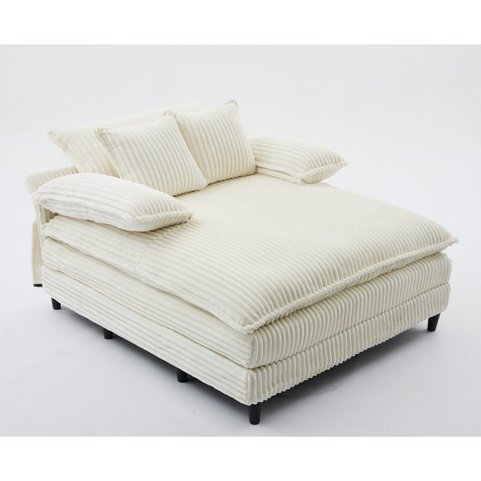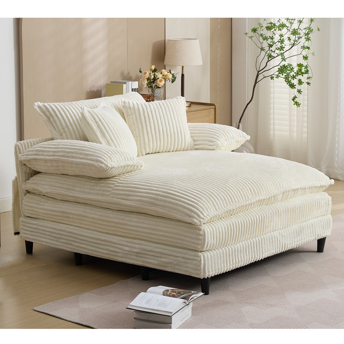 - 【Corduroy Fabric Chaise Lounge】: This modern sofa features a solid wood frame with a durable corduroy fabric cover, offering a maximum weight capacity of 300 lbs.The seat cushion is filled with highly elastic foam and reinforced with spring packs for superior support and comfort.