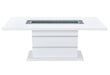 This dining table is a showcase example of how charm and a touch of elegance can dramatically change the look of your eating area. This table includes glitter detailing style elements with a sturdy construction and a high gloss finish with a clear glass inlay to round off the look. Constructed of MDF, Glass and Acrylic this dining table makes a bold statement. Finished in a White and Silver with a center glass, rectangle shape and pedestal base you will have more than enough room to entertain and enjoy your dining experience.