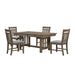 The Harrisburg Dining Set is the perfect centerpiece for your dining room, offering both style and functionality. Comprising a dining table and side chairs, this set features a robust construction of solid rubberwood, manufactured woods, and oak veneers, ensuring durability and longevity. The table''s rich finish is meticulously achieved through a detailed process of burnishing and glazing, enhancing the natural wood grain and creating a warm, inviting atmosphere. This family-sized dining set adapts to your needs with two 14-inch self-storing leaves, allowing the 66-inch table to extend up to 94 inches to comfortably accommodate 6 to 8 people. The chairs are equipped with high-density foam cushions wrapped in a 100% polyester easy-care fabric, providing both comfort and support. The heritage-style design of the dining set, featuring a traditional trestle table with a solid, pillared base and complementing slat-backed chairs, seamlessly blends elements of farmhouse, mission, and arts and crafts styles. This dining set is a practical choice for those who value both style and quality in their furniture.