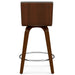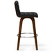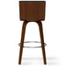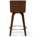 - Features 360-degree swivel seat and curved wooded legs with metal foot rest