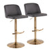 Toriano - Contemporary, Adjustable Barstool With Swivel With Rounded T Footrest (Set of 2) - Gray / Gold