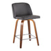 - Design and Style: The Toriano Counter Stool by LumiSource showcases a blend of comfort, modern simplicity, and classic mid-century modern styling. Its design features a padded upholstered swivel seat and fixed-height bent wood legs, making it a versatile addition to various interior themes.