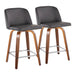 Toriano - Mid-Century Modern Fixed Height Counter Stool With Swivel And Square Footrest (Set of 2) - Walnut / Gray
