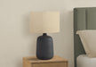 - Stylish Design: The lamp boasts a vase-like shape crafted from textured black ceramic, paired with a beige linen drum shade and topped with a silver finial, adding a touch of sophistication to any contemporary decor.