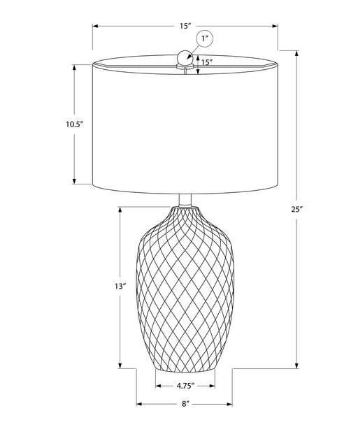 8th StreetElegant Design: Features a 25" high ginger jar-shaped ceramic base in a textured glazed cream finish with an ivory drum shade and silver finial...