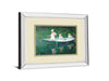 Step into a peaceful riverside escape with this captivating mixed media artwork, where three elegantly dressed figures share a quiet moment in a boat surrounded by lush greenery. The serene reflections on the calm water invite contemplation and calm, while the mirrored frame adds a modern touch of sophistication. Double-matted in soft cream and beige tones, this piece offers a gallery-quality finish that brings depth and dimension to your space. Protected by premium real glass and ready to hang, it’s the perfect addition to elevate the ambiance of your living room or office with timeless elegance and tranquil charm.