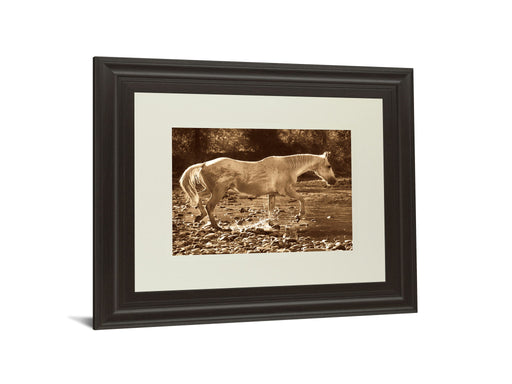 Classy LivingStep into a tranquil moment with “The Crossing,” a captivating photographic print that captures a horse gently moving through a rocky stream. Rende...
