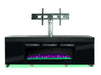 • Individual LED Color Selection for the Bedding to create cglowing embers 7 Levels of flame setting & colors to choose from, LEDs with an array of colors create a real flame effect. Multi Level of Fan-forced heating - supplemental heat for 800 Sq. Ft. On/off timer Fireplace Remote control TV Cabinet: High Gloss Black Paint for a modern sleek design 2 Storage Compartments with LED lighting on the door hinges. CARB certified P1 MDF high glossy paint in glossy black color