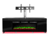 • TV Bracket: Supports 32" - 80” flat-panel TV, VESA bracket:800X500mm (100lb Max) LED Lighting Kit with Remote Control Silver Aluminum Tube for the back. Cable Management Hole hides cables from View. Tilt: +/-15°, Swivel: +/-30° Aluminum and Steel construction for stability 48" CSA CERTIFIED Electronics Fireplace Includes 2 Fire Bed Options 1. Driftwood Logs, 2. Acrylic Crystals secured behind a durable tempered glass with a contemporary black frame.