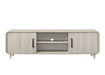 Elevate your living space with this sleek and contemporary entertainment solution that blends modern design with functionality. Featuring a streamlined silhouette and a chic, light wood finish, this piece exudes understated elegance while offering practical storage options. Sliding doors let you alternate between closed cabinets and open shelving, perfect for displaying décor or housing media devices. Enhanced with minimalistic black handles for a touch of contrast, this unit stands on tapered legs, adding a mid-century flair to its aesthetic. Whether you're setting up your home theater or showcasing your favorite accents, this centerpiece effortlessly combines style and utility to create a harmonious and inviting ambiance.