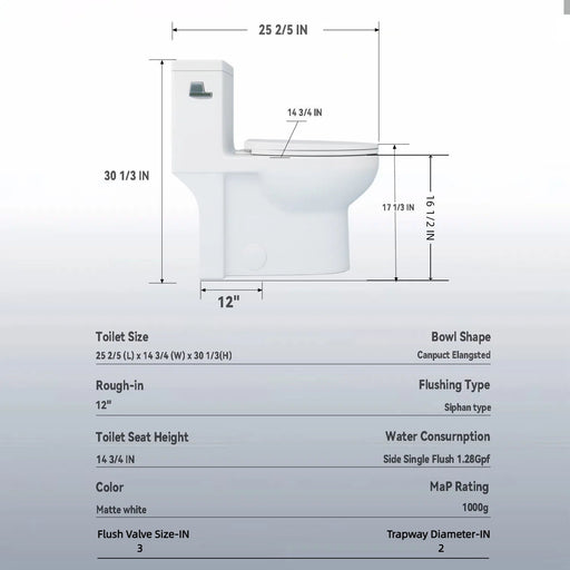 Gloss Tornado Flush 1 Piece Elongated Toilet With Siphonic Side Press, ADA Comfort Chair Height - Gloss White