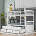 Twin Over Twin Bunk Bed With Trundle And Drawers With Arched Headboard And Footboard - White