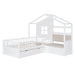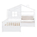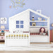 Twin Size House Bed With Sofa, Kids Platform Bed With 2 Drawers And Storage Shelf - White
