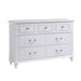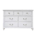 The Alana 7-Drawer Dresser is the perfect addition to your little ones bedroom! This horizontal dresser comes with seven, spacious drawers; perfect for keeping all of your belongings neatly stored away. The bottom drawers feature a dust proofing layer to help keep your belongings in great condition. The four bottom dressers are the perfect size for storing away more bulkier items, like sweaters. The crystal-like drawer handles and knobs pair beautifully with the clean finish. Bevel edges and cabriole feet complete the look of this transitional design.