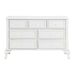 The Jesse Dresser features a charming design with delicate accents. Crafted of durable solid and manufactured wood, finished in beautiful grey. Keep your little one organized with the spacious drawers. Perfect for storing clothes and delicate items. Adorable crystal-like knobs complete this lovely piece. Pair with the Jenna Panel Bed for a complete look!