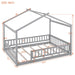 Full Size Bed House Bed Frame With Fence - Gray